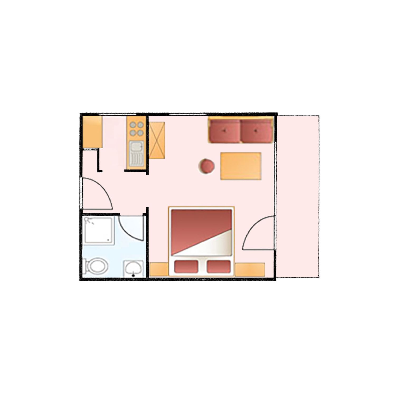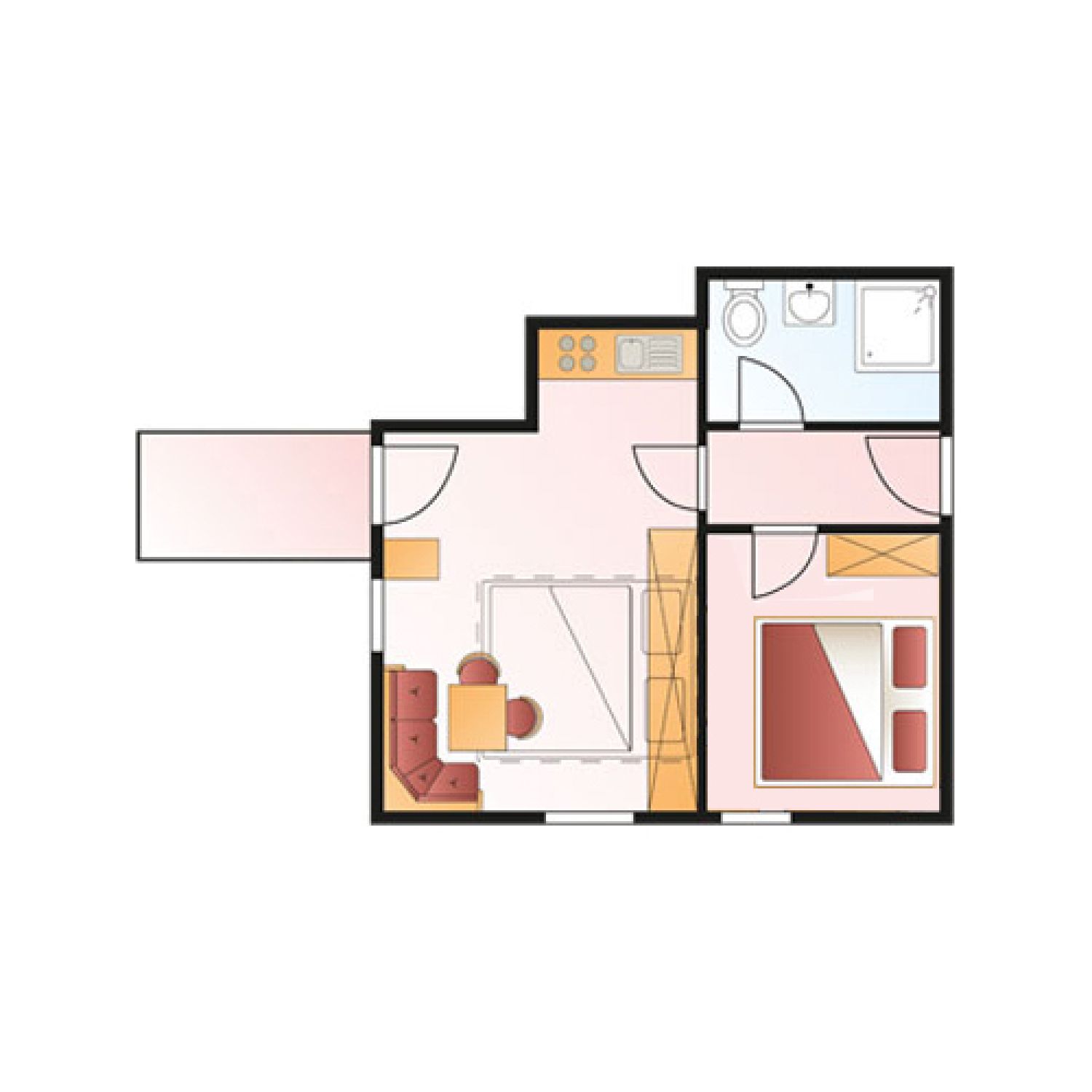- geräumiger Wohn-Schlafraum mit ausklappbarem Doppelschrankbett
