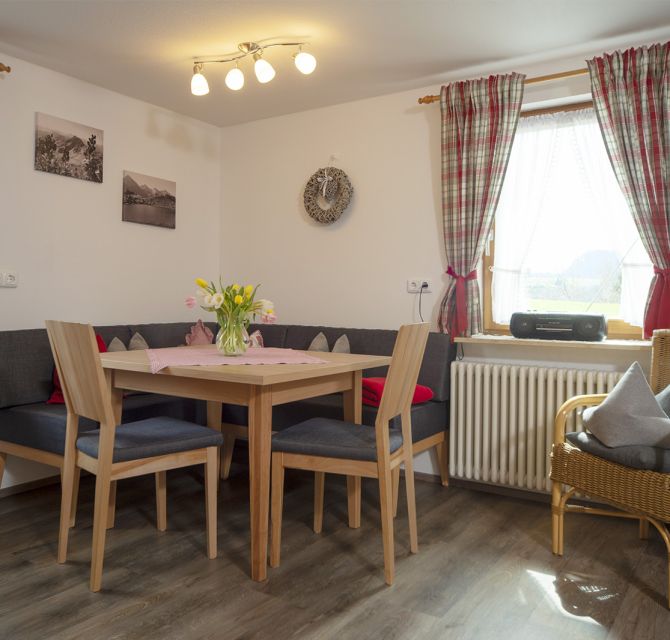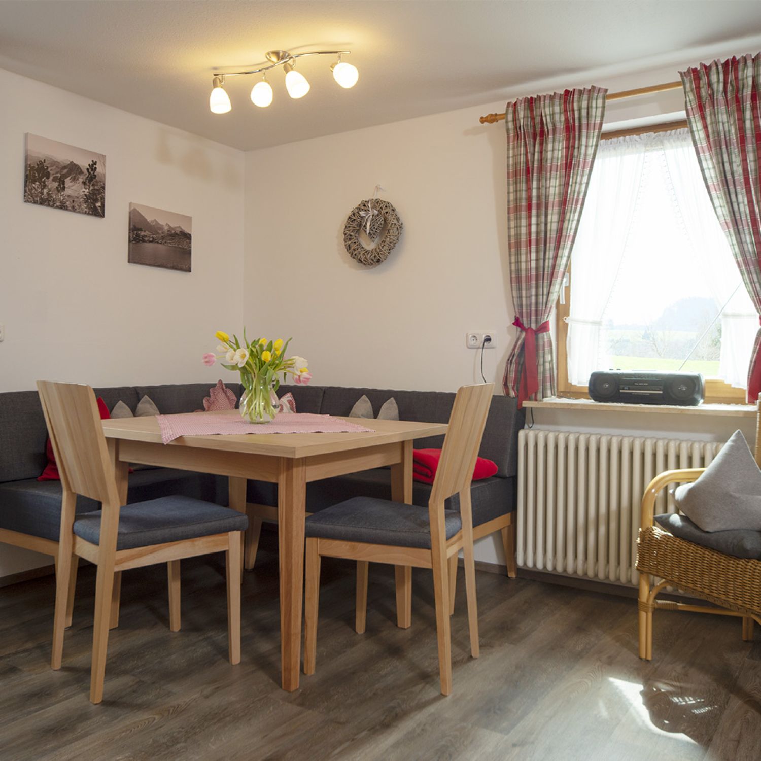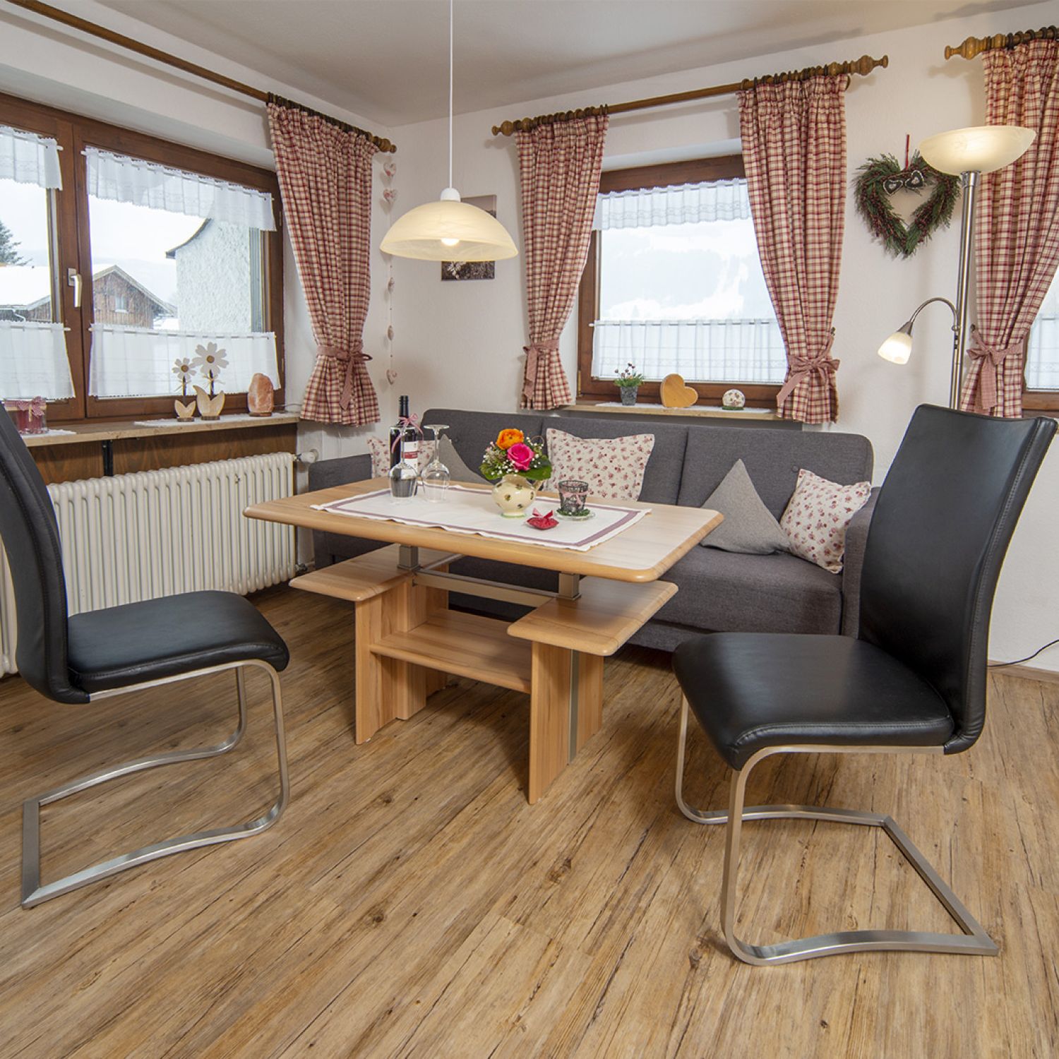 Unsere Ferienwohnungen sind hell und geräumig, komfortabel ausgestattet und liebevoll eingerichtet. Von allen Balkonen aus blicken Sie frei und unverbaut auf die Allgäuer Berge. In jeder Wohnung steht Ihnen Sat-TV mit Flachbildschirm, ein CD-Player und kostenfreies W-Lan zur Verfügung.