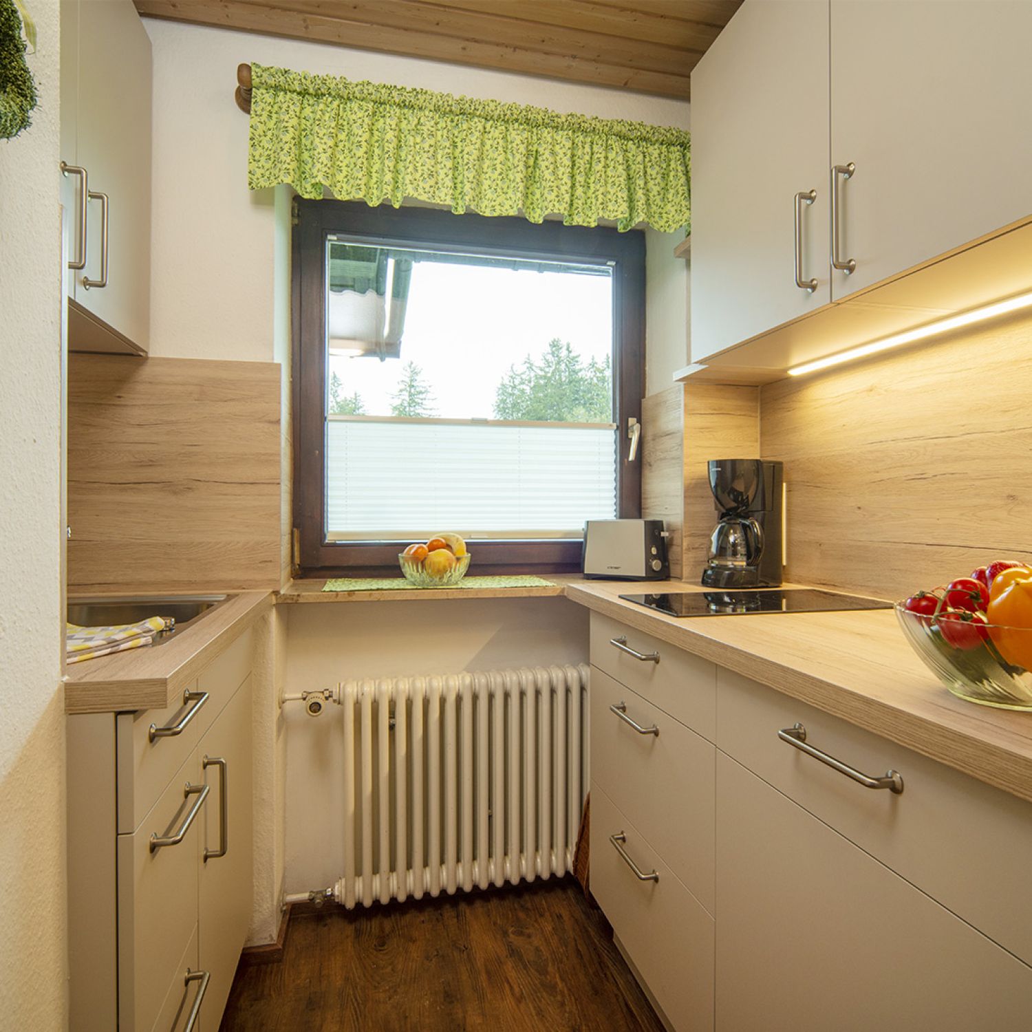 - separate Küche mit Cerankochfeld, Kaffeemaschine, Wasserkocher, Toaster und Eierkocher