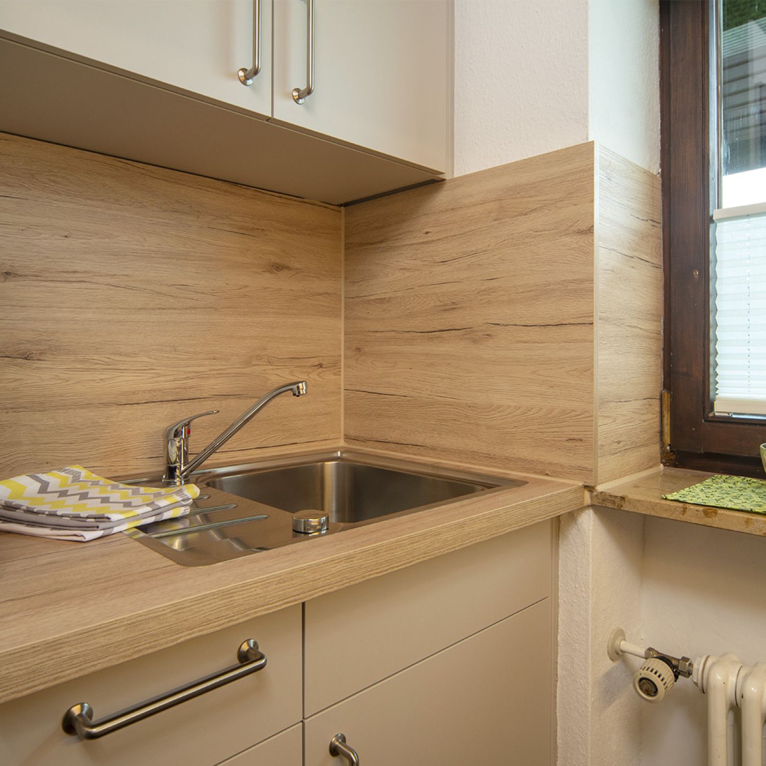 - Kochnische mit Cerankochfeld, Kaffeemaschine, Wasserkocher, Toaster und Eierkocher
